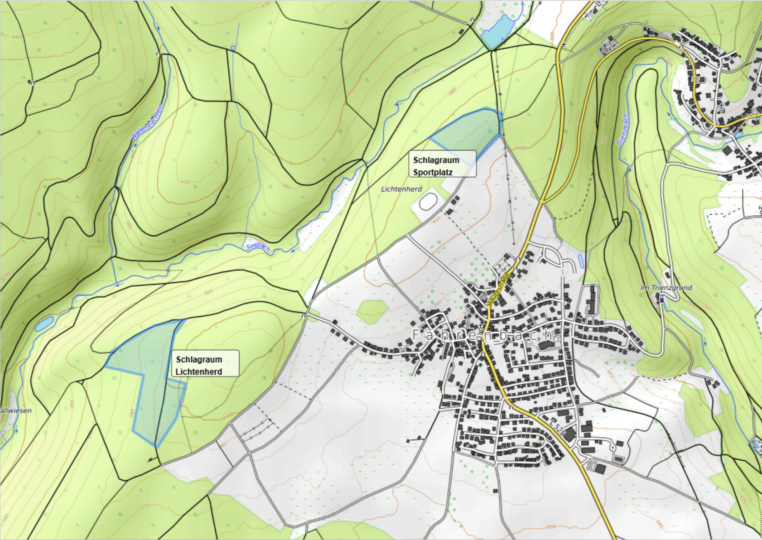 Sowohl das Polterholz als auch die zu versteigernden Lose befinden sich bei Fahrenbach am Lichtenherdweg, am Baumeselweg und am Langerweg. Bei Wagenschwend Richtung Reisenbacher Grund am Hessenweg und Sackweg. Weiteres Polterholz liegt zwischen Balsbach und Laudenberg am Mittleren Weg und Kopfweg und in Fahrenbach am Seedammweg.